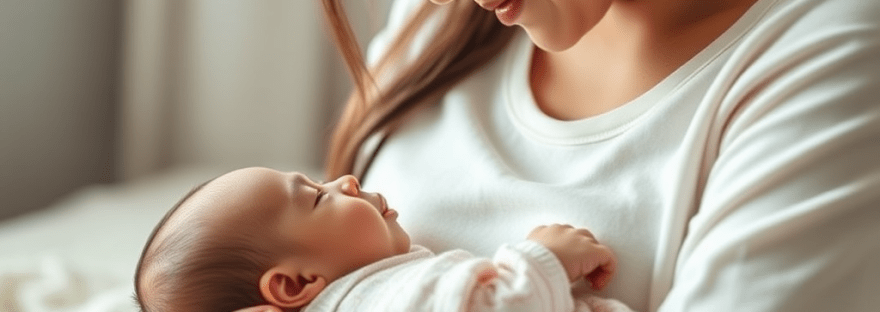 Madre sosteniendo a su bebé recién nacido en un momento de ternura y conexión.
